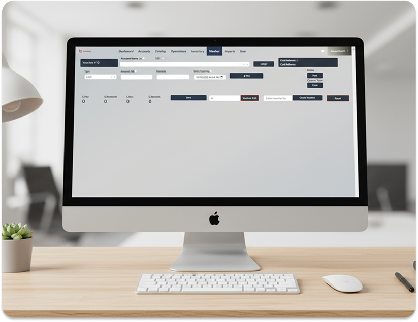 - KEEP YOUR FINANCIAL RECORDS TRANSPARENT BYGENERATING AND MANAGING DIFFERENT TYPES OF VOUCHERSDIRECTLY WITHIN THE SYSTEM.